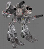 The Marauder II started out as Thrashdog's model, but it went through four different people before the model was complete. Thrashdog did most of the initial design work; I rebuilt part of the central torso, made adjustments to the legs and arms of the model, set up the low-poly and completed the texture layout; Dark Phoenix did the texture painting, and finally Scanner adjusted the feet to work with the Mechwarrior engine.
